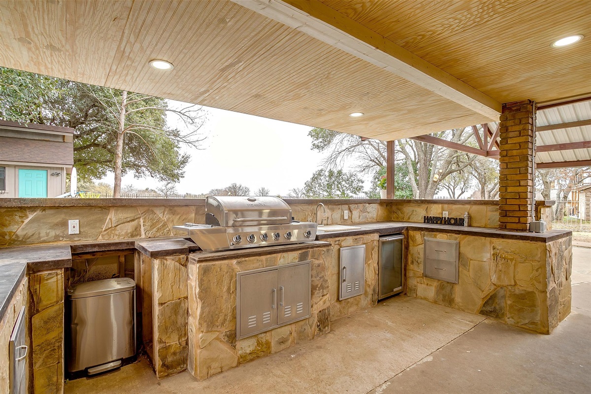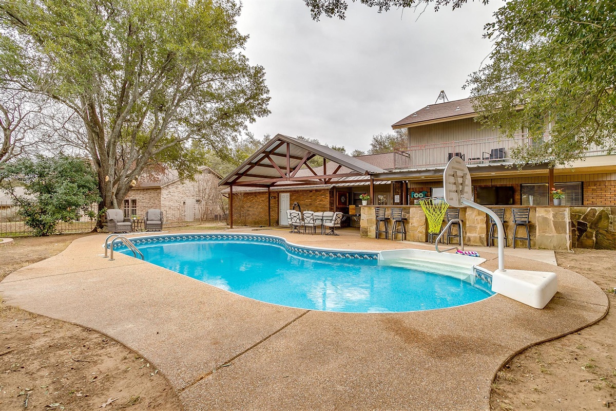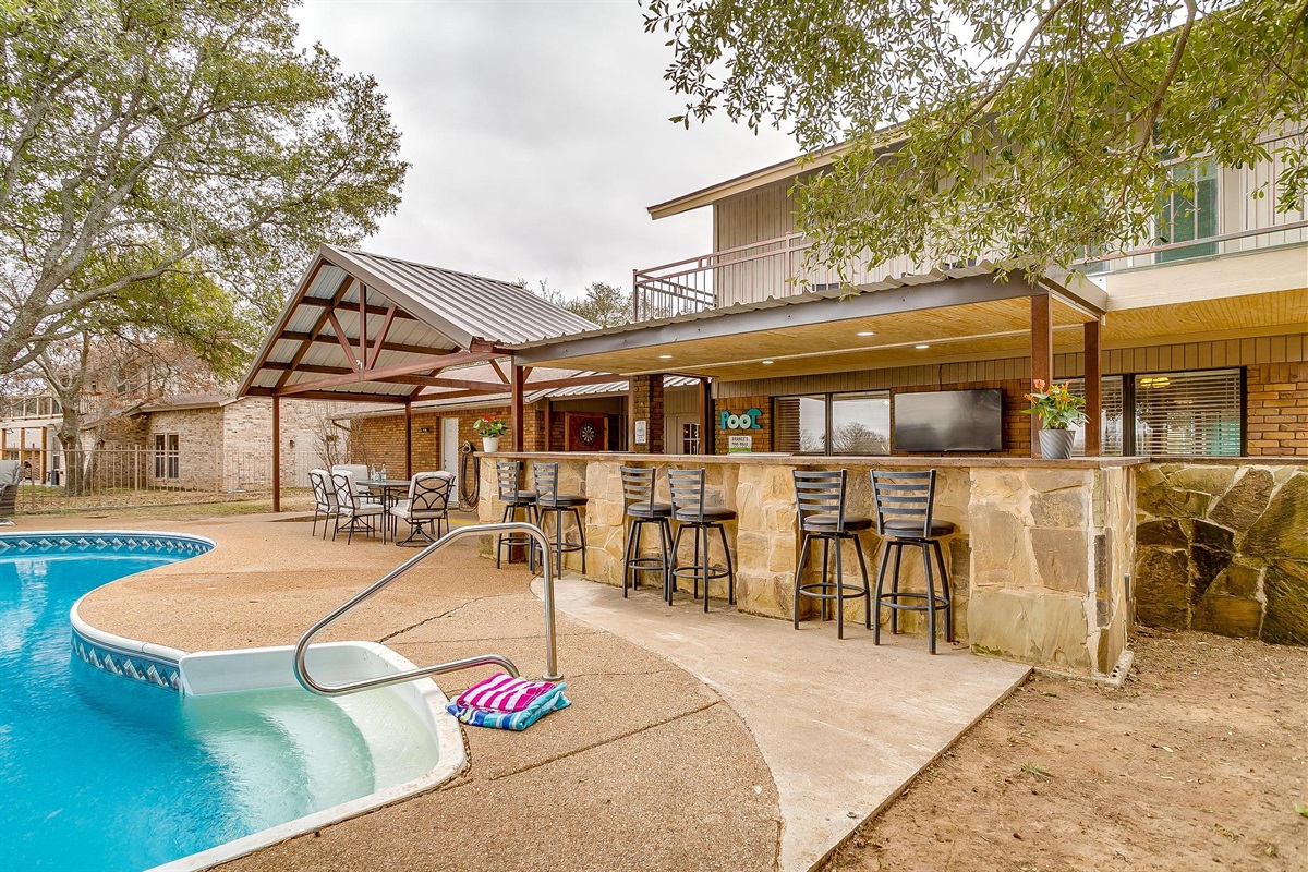 Discover "Paradise on the Green", brought to you by Elysian Vacation Rentals. A 3-bedroom home with a luxurious pool right on the 8th green of Legends Country Club golf course. Enjoy the huge outdoor kitchen with a covered patio and BBQ grill. Whether you're visiting Tarleton State University, in town for a weekend getaway, or on a family trip, our home offers comfort and relaxation with space for up to 7 guests.