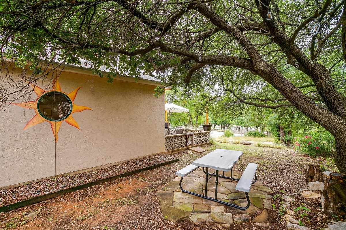 • Under a shady live oak tree perfect for picnics and outdoor lounging